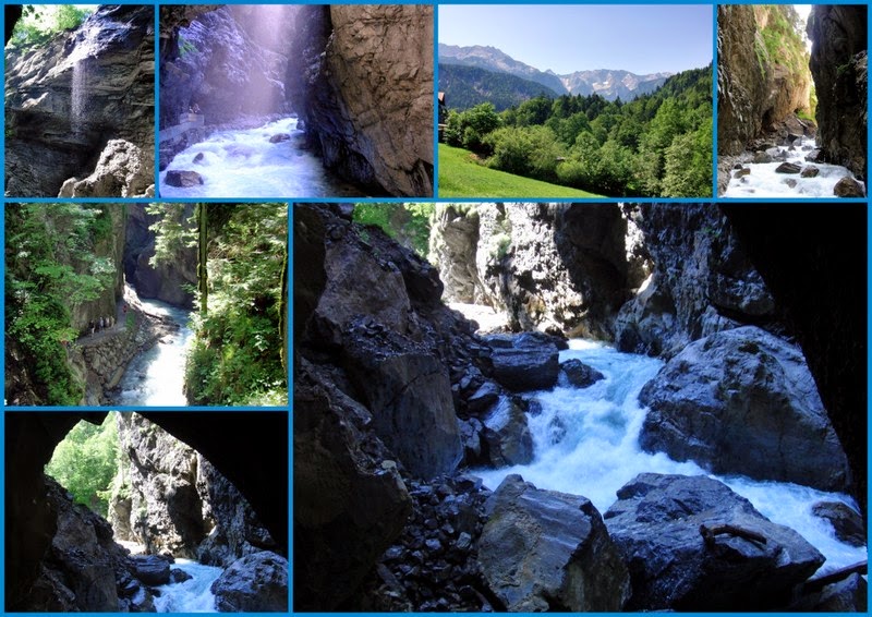 So we drove down to Garmisch-Partenkirchen and visited the Partnachklamm, which is a 2300 ft. long gorge in the Alpes. Its walls rise to 260 ft. on both sides.